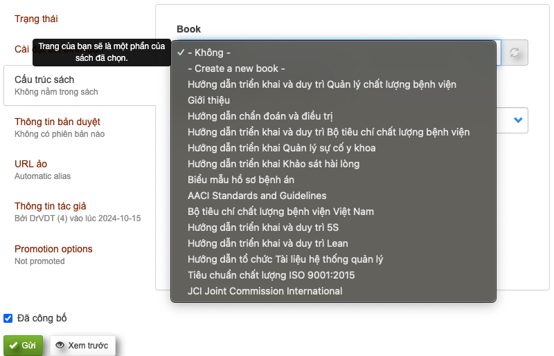 Đối với cộng tác viên, quản trị nội dung có thêm quyền đưa tài liệu vào trong 1 cấu súc sách. Như tên gọi, cấu trúc sách giúp tổ chức các tài liệu liên quan, đặt với nhau một cách có hệ thống. Điều này giúp người đọc học, tra cứu tốt hơn.